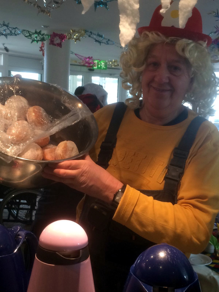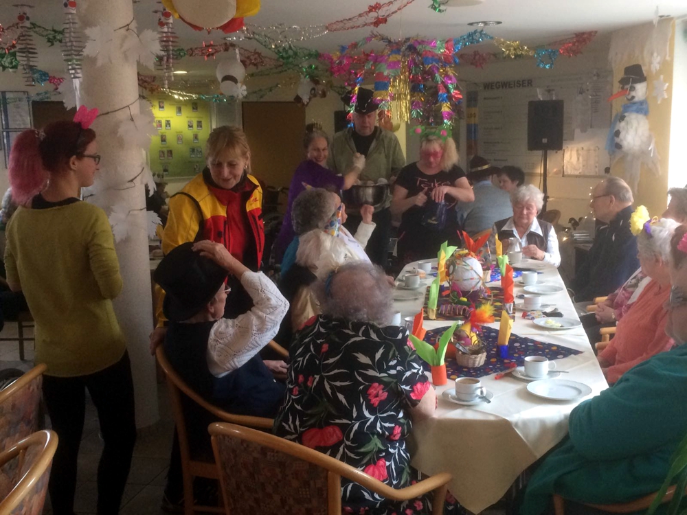 In Sachsen, Sachsen-Anhalt, Thüringen, Berlin, Brandenburg und Niedersachsen freuten sich über 20.000 kleine und große Gäste über die süße Leckerei, die es zum Mittagessen oder Vesper gab. So auch im Altenpflegeheim des DRK Zwickauer Land in Werdau. Die Bewohner des Seniorenheims nutzten den Anlass und veranstalteten am Nachmittag des Rosenmontags eine bunte Faschingsparty. Während ein Alleinunterhalter Musik Spielte, Späße machte und zum Tanz animierte, ließen sie sich den Pfannkuchen bei eine fruchtigen Ananas-Mandarinen-Bowle schmecken. Und darauf ein Faschingstusch: „Alaaf, alaaf, helau!“