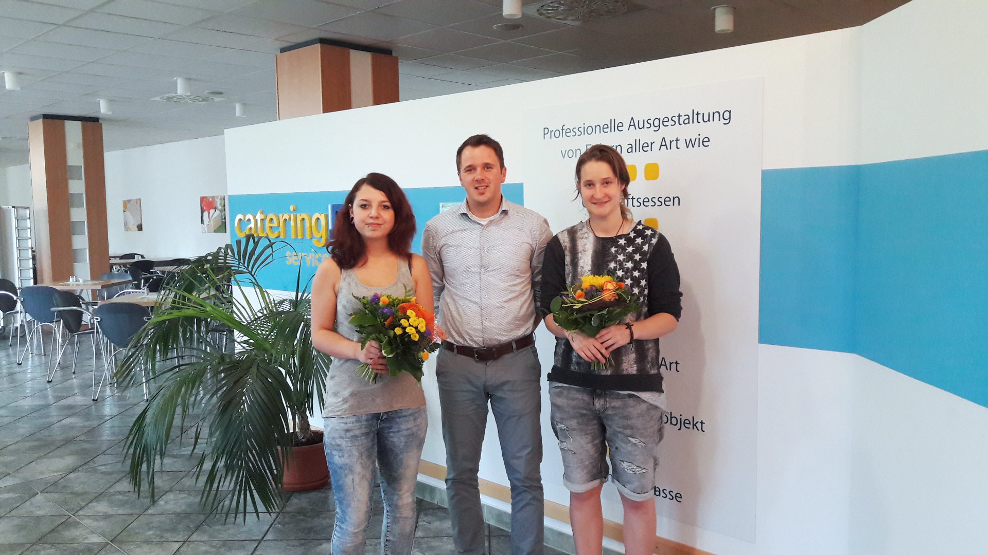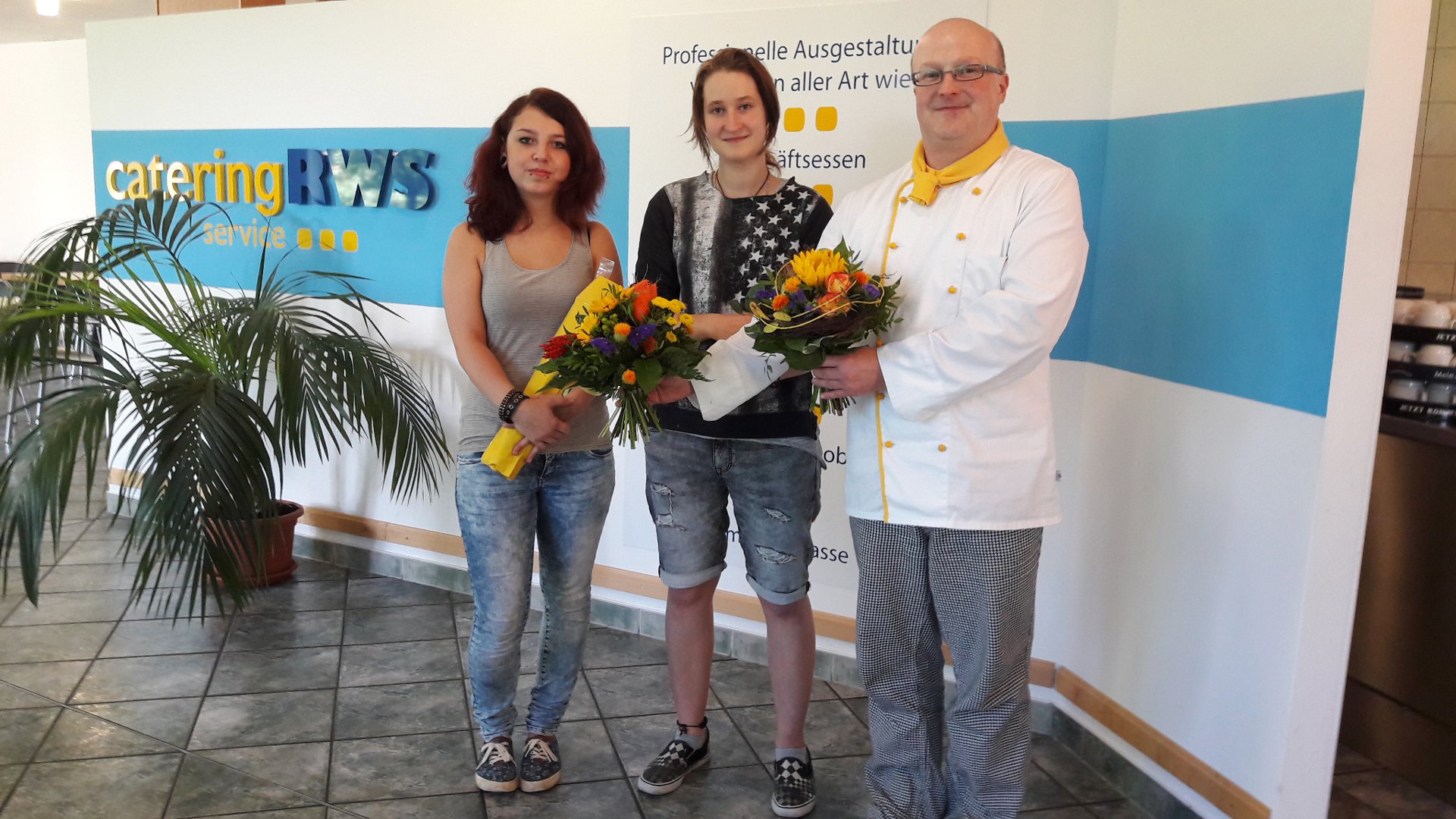 Michele Lawatsch, Eileen Strauch sowie RWS Küchenleiter und Ausbilder freuen sich auf den Start zur Ausbildung Koch/Köchin am 1. August 2017 in Chemnitz.