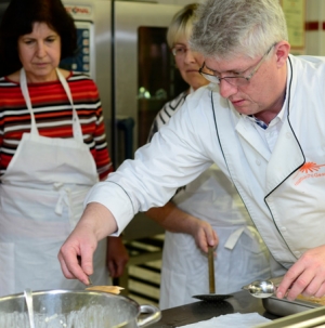 Kita-Leiterinnen mit dem Fernsehkoch bei RWS am Herd
