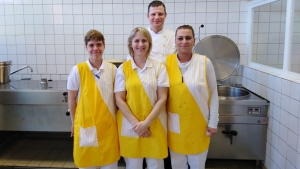 Blumen in der RWS-Produktionsküche im DRK-Seniorenheim Werdau als Ansporn für Manuela Schmiedel: Die 38-Jährige, bei der RWS Cateringservice GmbH seit 2013 als geschätzte Mitarbeiterin, wird ab August 2019 eine zweijährige Ausbildung zur Köchin beginnen.