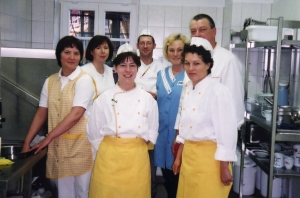 Jede neue Küche ist anders. Die konkreten Leistungsverzeichnisse geben die Anforderungen vor, die dann von der Küchentechnik über die logistischen Abläufe bis zu den notwendigen Kalkulationen reichen. Schließlich müssen am Ende immer auch die Zahlen stimmen. Und das wichtigste war uns immer die Kundenzufriedenheit. Einen besonders aufwändigen Neuauftrag übernahmen wir 1996 mit der Versorgung für das Seniorenzentrum Doberlug-Kirchhain. Der Kunde wünschte ein Tablettsystem, mit dem wir bis dahin gar keine Erfahrungen hatten. Die Zeit unmittelbar vor dem Produktionsstart war fast der Wahnsinn, der Coach vom Küchenausstatter meinte, wir hätten zu wenig Personal eingeplant. Doch wir haben uns eingefuchst. Ich erinnere mich auch noch gut daran, wie wir 1998 die Gemeinschaftsversorgung in der Landes-Polizeifachschule Brandenburg übernommen haben. Da bekamen wir es mit Bargeldzahlung und entsprechenden Kassensystemen zu tun. Wir haben von früh um Fünf bis abends Acht im Objekt gestanden, um alles zum Laufen zu bringen. Ich sehe uns noch bei den verzweifelten Versuchen, die Kassen zu programmieren. Es waren dennoch schöne Zeiten. Abends saßen wir völlig erschöpft in einer Basdorfer Gaststätte und wussten, heute haben wir wieder richtig etwas geschafft…
