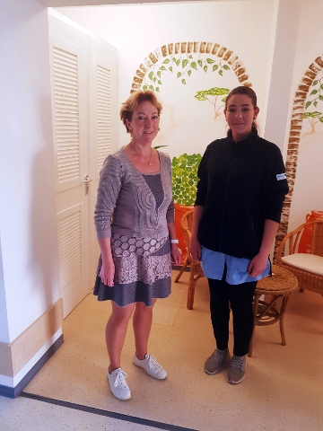 DRK-Heimleitung Dagmar Plarre (links) mit RWS-Mitarbeiterin Frau Dreier (rechts).