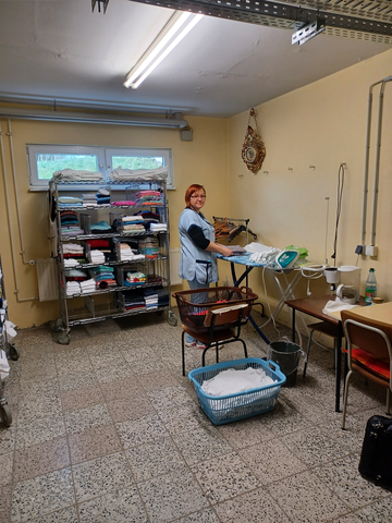In der Wäscherei: RWS-Mitarbeiterin Frau Alexi