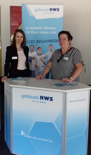 Eine geeignete Plattform für diese aktive Personalsuche bietet die Jobbörse, die das Jobcenter Leipzig seit drei Jahren speziell für die Gebäudereinigungsbranche veranstaltet. Ende Mai war es in diesem Jahr wieder soweit. Wie in den Jahren zuvor präsentierte sich die RWS Gebäudeservice GmbH allen Beschäftigung suchenden Menschen auf diesem Gebiet. Zwei Mitarbeiterinnen der Niederlassung Leipzig freuten sich über das rege Interesse.