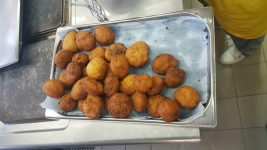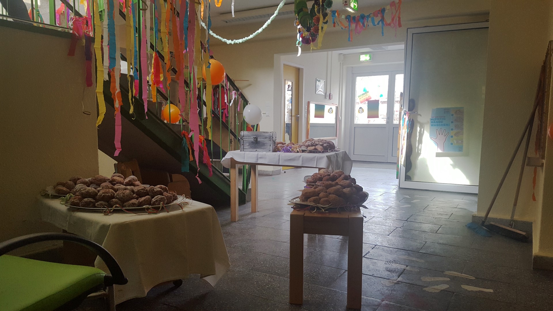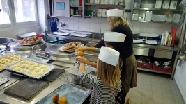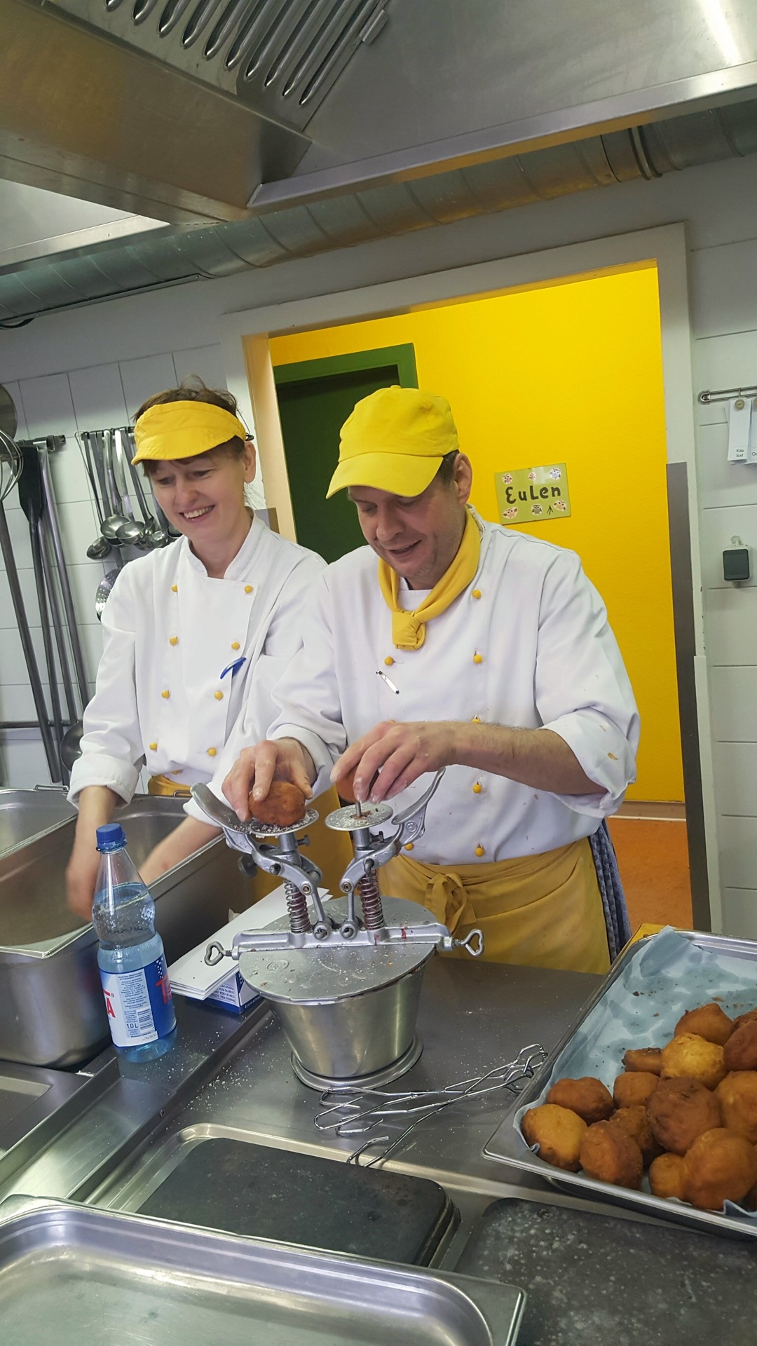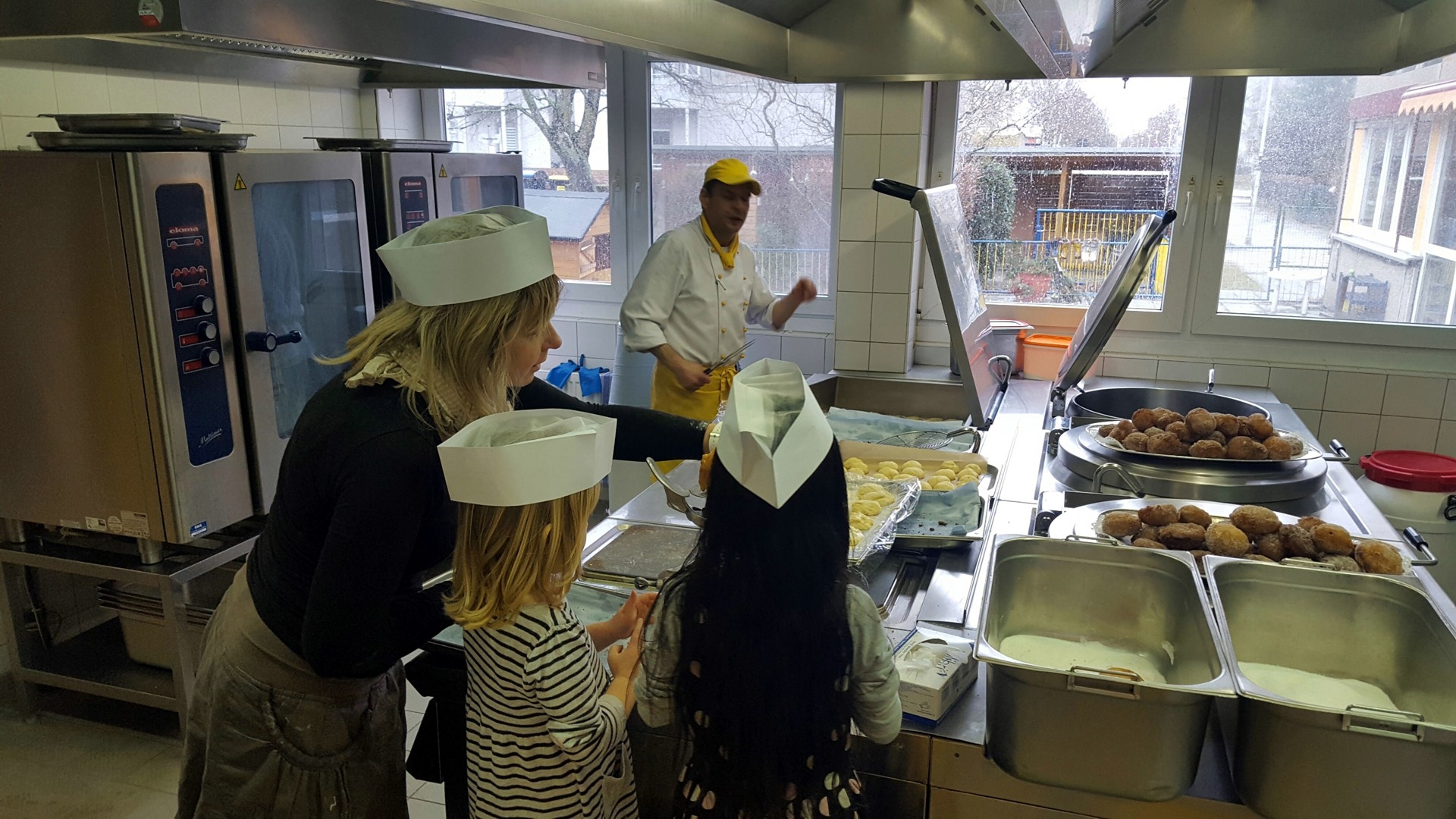 Der Integrationskindergarten Kneipp®-Piraten möchte sich ganz der Meuterei und des Kaperns verschreiben. So wollen sie den Außenbereich ihrer FRÖBEL-Einrichtung um ein Piratenschiff bereichern. Damit die Schatzkiste zum Kauf des Schiffs mit weiteren Goldstücken gefüllt wird, verschlemmten Kinder, Erzieher und RWS-Köche nur einen kleinen Teil der leckeren Berliner oder Krapfen, wie die Faschingsleckerei auch andernorts genannt wird. Der Großteil der 500 Pfannkuchen boten sie den Eltern beim Abholen ihrer Kinder gegen einen selbstgewählten Obolus zum Mitnehmen an. „Wir haben uns über den Tag mit den Kindern sehr gefreut. Und sie sahen auch aus, als wäre das ein großer Spaß gewesen. Frisches und Selbstgemachtes schmeckt nun einmal am besten. Und beim Piratenschiff konnten wir auch ein wenig helfen,“ so der RWS-Küchenleiter.