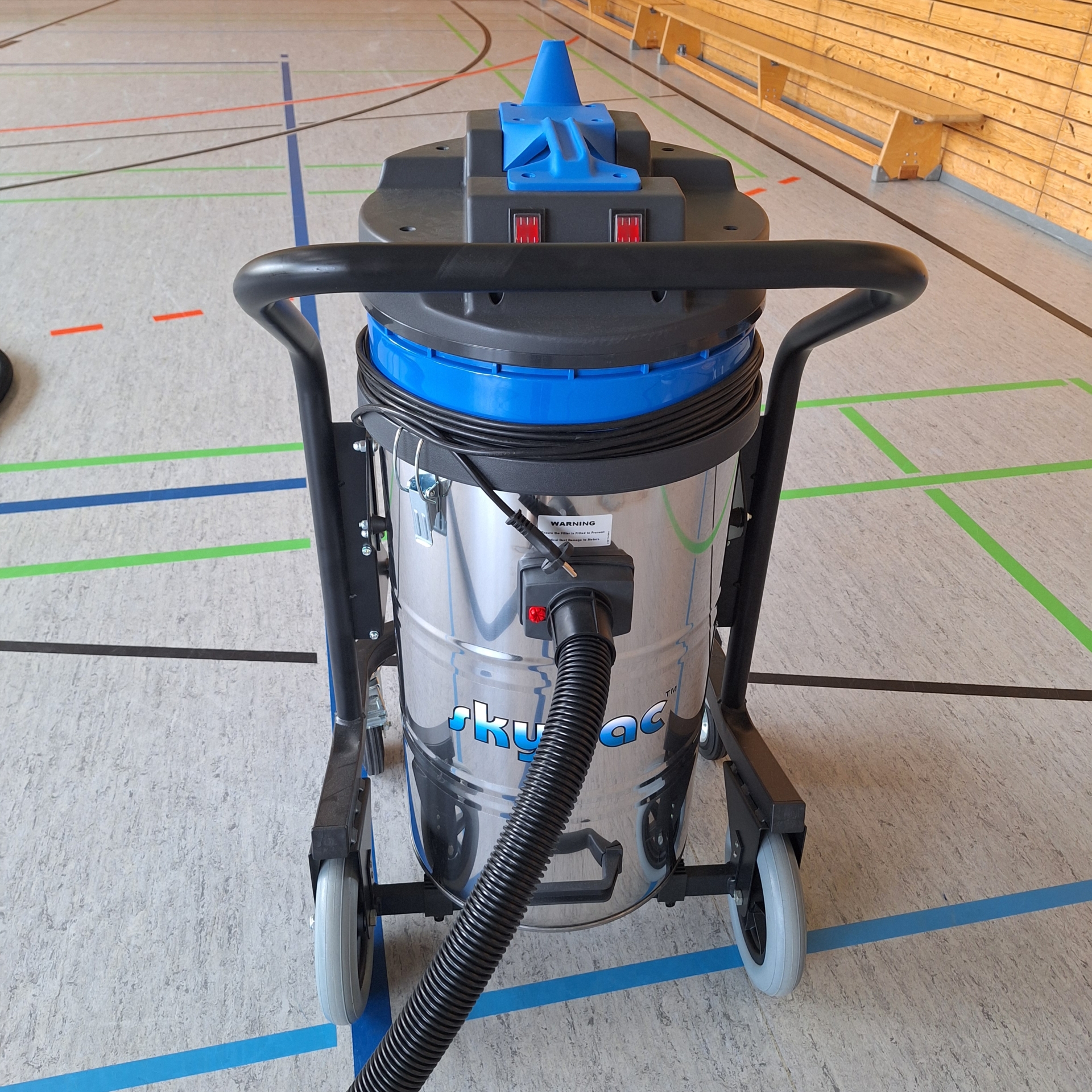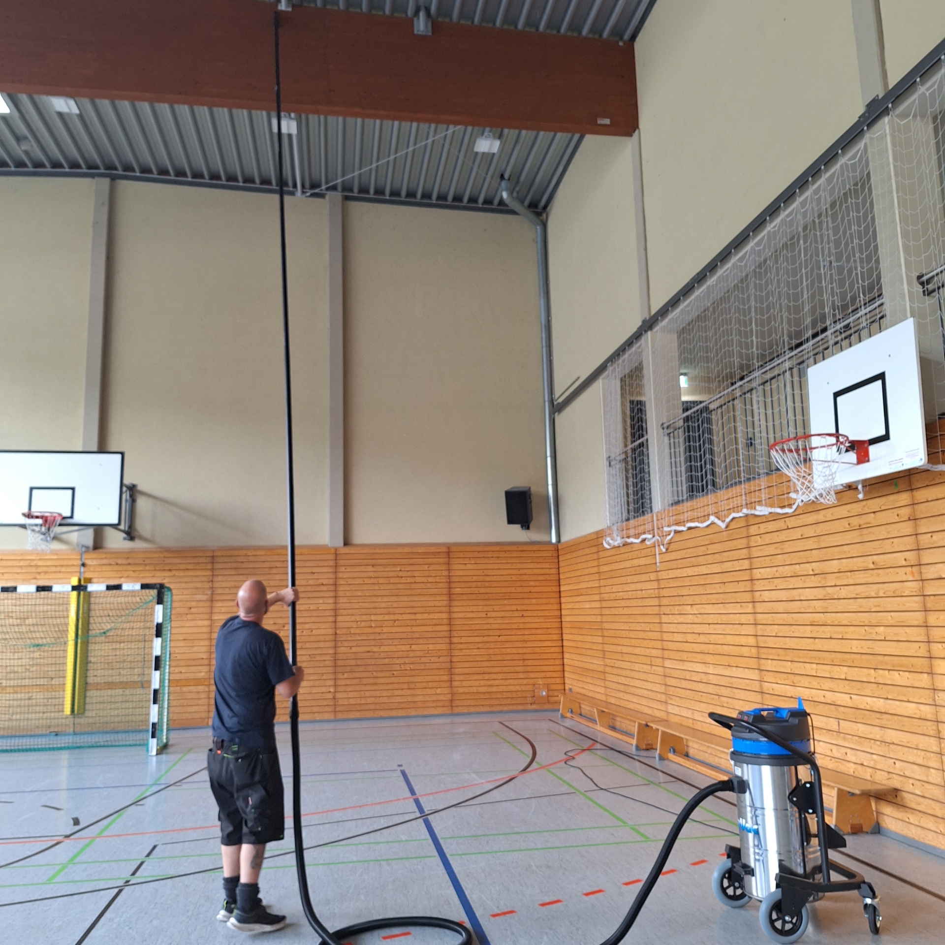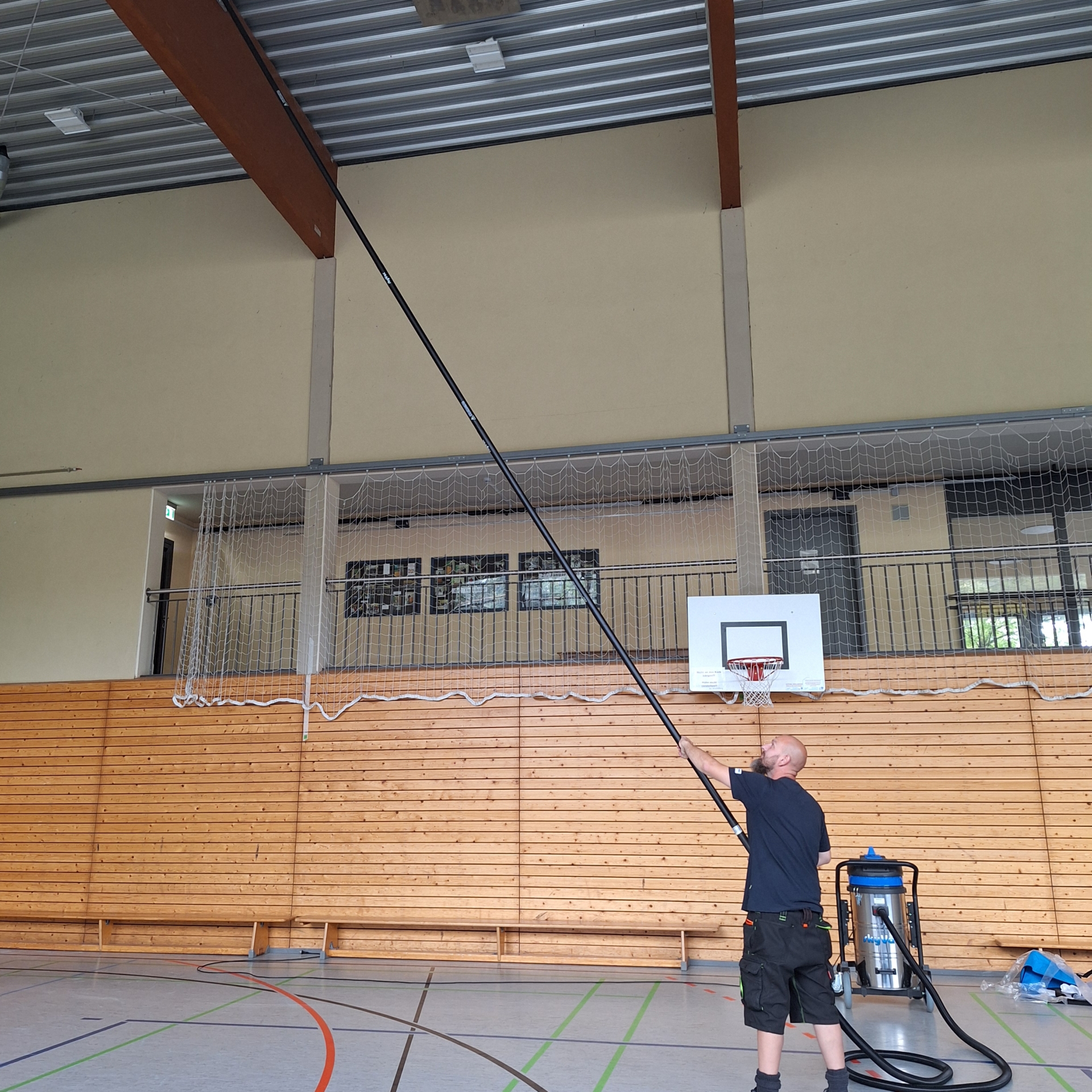 Gebietsleiter Marcel Otto, verantwortlich für die Region Südthüringen, ist von der neuen Technik und deren Möglichkeiten begeistert: „Mit den neuen leistungsstarken Saugern und dem modularen Carbonstangen-Stecksystem erreichen wir mühelos Höhen von bis zu 15 Metern. Dadurch sind keine Leitern oder Absicherungen mehr erforderlich. Ein Mitarbeiter kann gefahrlos nass- oder trocken arbeiten, zum Beispiel Spinnweben entfernen und Dachrinnen reinigen. Das spart Zeit und erhöht die Sicherheit. Eine optionale Kamera mit Monitor ermöglicht zudem die präzise Kontrolle der Reinigung. Besonders in Turnhallen, wo wir keine Hubbühnen verwenden können oder in eng bebauten Industriehallen ist skyVac ideal. Die platzsparende Verpackung der Zubehörteile und Carbonstangen erleichtert zudem Transport und Lagerung. Auch in Möbelhäusern und Pflegeheimen, wo ein sicheres Arbeiten in Höhen nötig ist, hat sich das System hervorragend bewährt.“