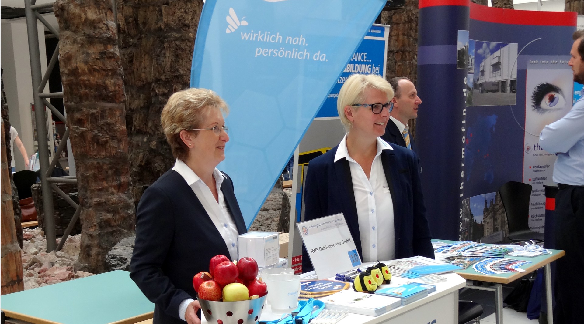 v.l.n.r: Erika Haugk, RWS Gebietsleiterin, und Dana Claus, Leiterin der RWS Niederlassung Chemnitz, präsentieren die RWS Gebäudeservice GmbH auf der Integrationsmesse in Chemnitz.