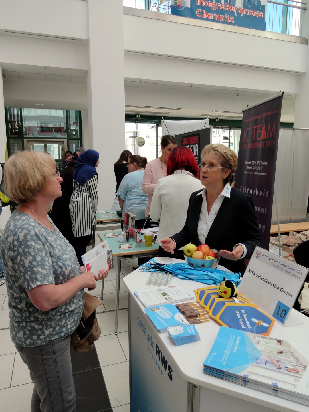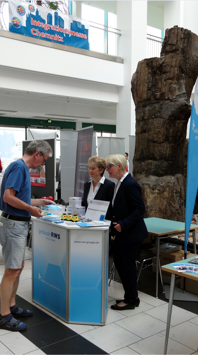 Gemeinsam mit der Stadtverwaltung Chemnitz und lokalen Akteuren veranstaltete die solaris Förderzentrum für Jugend und Umwelt gGmbH am 14. Juni 2017 die 6. Integrationsmesse im DAStietz in Chemnitz. Unter der Schirmherrschaft von Gunnar Bertram, Präsident der Regionalkammer Chemnitz der Industrie- und Handelskammer, präsentierten sich von 10.00 bis 14.00 Uhr 20 Arbeitgeber und Vertreter der Wirtschaft aus Chemnitz und der Region. Mit dabei war auch die Niederlassung Chemnitz der RWS Gebäudeservice GmbH.