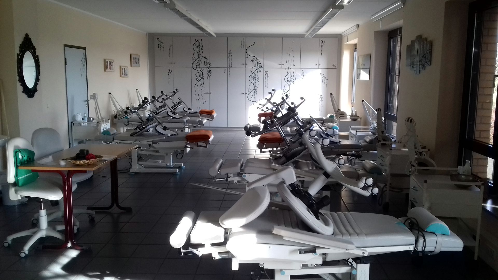 Damit spielt die langjährige RWS-Mitarbeiterin unter anderem auf die zahlreichen Fachkabinette des Beruflichen Schulzentrums an. Hier wird das Gelernte sogleich in praktischen Übungen angewendet. Ein Massagestudio, Fotostudio oder Zeichensaal zählen hier etwa dazu. „Solche Räume hat nicht jede Schule“ weiß Petra Köprülü. „In der Reinigung von Klassenzimmern und Speisesälen sind sie für uns eine willkommene Abwechslung. Auch hier gehen wir mit einem Reinigungswagen sowie einem Wischgestell sorgfältig und zuverlässig ans Werk.“