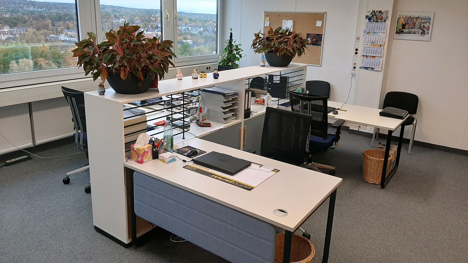 Das neu eingerichtete Gebietsleiterbüro der Niederlassung Chemnitz mit Blick über die Stadt.
