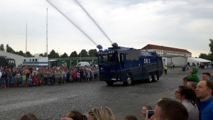 Ein abwechslungsreiches Programm benötigt viel Platz und so wurden alle Flächen des Präsidiums im Norden von Leipzig zum Tag der offenen Tür für Vorführungen, Informationsständen und Bühnen genutzt. So präsentierten sich etwa der Polizeisportverein e. V. Leipzig, die Wasserschutzpolizei oder das Präventionsprojekt „Sachsens KinderKomissare“. Nur wenige Schritte weiter warben das Auswahlteam der Bereitschaftspolizei sowie die Polizeifachschule um Nachwuchs, während die kleinsten Besucher mit Poldi und der Puppenbühne der Polizeidirektion Dresden ihren Spaß fanden. Höhepunkt aller Vorführungen und zugleich aktionsreicher Abschluss des Tages bildete die große Vorführung des Spezialeinsatzkommandos der Polizei, welche mit Wasserwerfern und Räumungsfahrzeugen das Auflösen einer Demonstration simulierten. „Wir freuen uns sehr, dass sich über 3.000 Besucher über unsere Arbeit informiert haben. Das nächste Mal öffnen wir die Pforten unseres Präsidiums in drei Jahren,“ so der Leiter Innerer Dienst der Bereitschaftspolizei Leipzig. „Nun haben Dresdner und Chemnitzer erst einmal die Möglichkeit sich in ihren Heimatstädten zu informieren.“