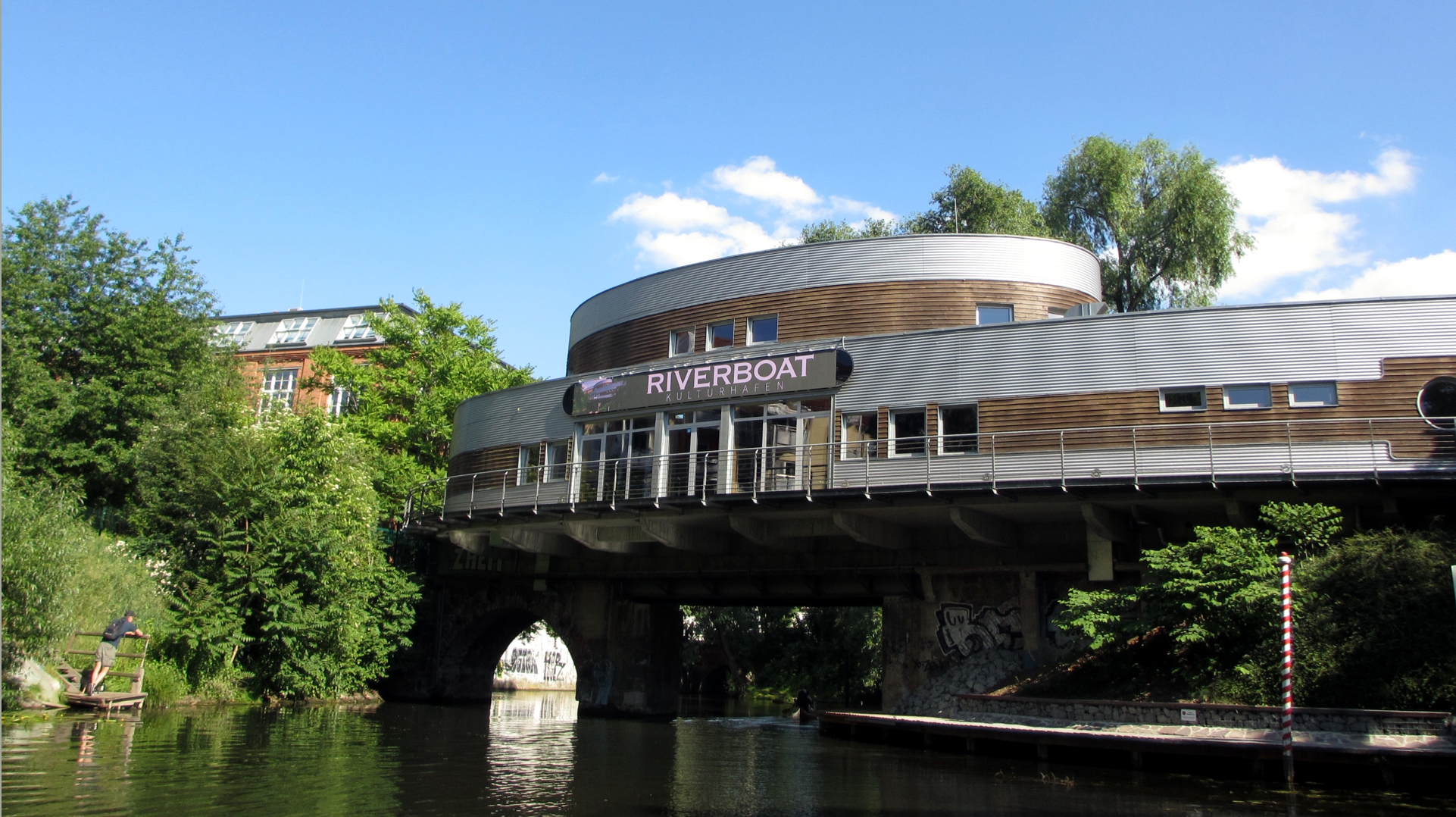 Und so schipperte die illustre Runde bei Kaffee und Kuchen von einer Wasserstraße in die nächste. Hinein etwa in den Karl-Heine-Kanal mit dem Stelzenhaus, Industriedenkmälern, die heute Loftwohnungen beherbergen, sowie dem Riverboat, das auf einer ehemaligen Eisenbahnbrücke errichtet wurde.