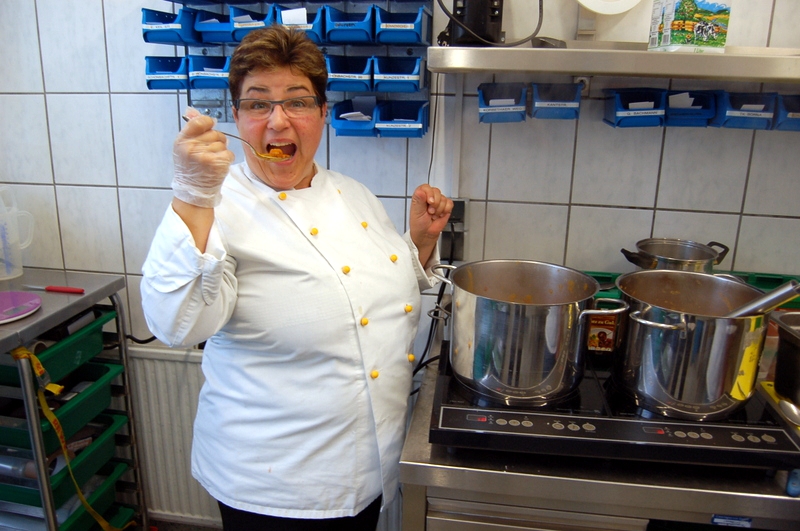 RWS-Küchenleiterin Birgit Hemesath aus unserer Küche in Meuselwitz bei der Verkostung.