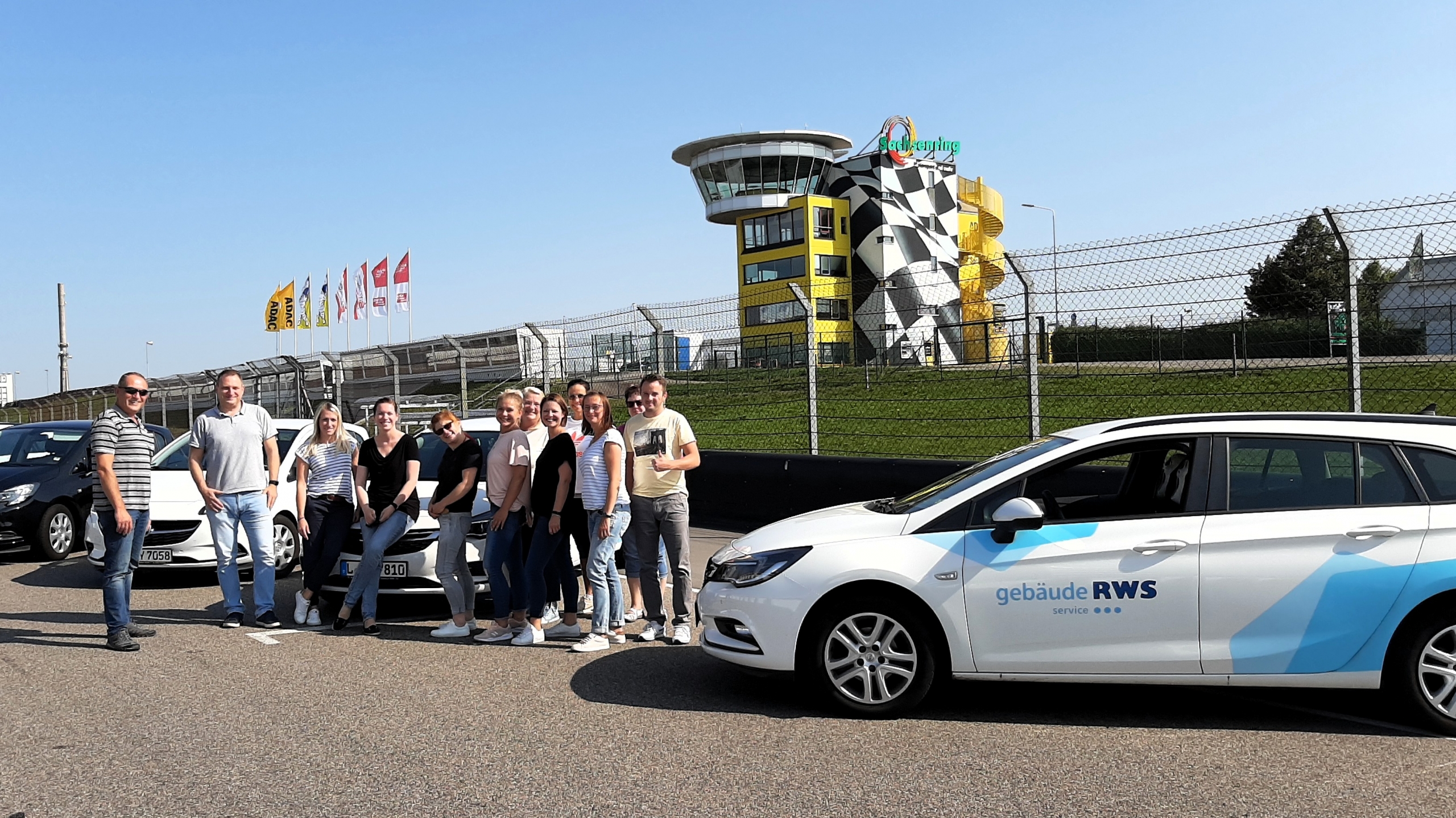 Fahrspaß und Sicherheit erlebten die Mitarbeiter der Niederlassung Chemnitz bei Fahrsicherheitstraining | v.l.n.r.: Klaus Berg (Regionalvertriebsleiter RWS Gebäudeservice GmbH), Ralf Hopperdietzel (Niederlassungsleiter RWS Gebäudeservice GmbH), Peggy Hermer (Assistentin des Bereichsleiters RWS Cateringservice Gmbh), Nicole Scholz (Assistentin des Niederlassungsleiters RWS Gebäudeservice GmbH), Romy Dressel (Gebietsleiterin RWS Gebäudeservice GmbH), Ramona Renker (Vorarbeiterin RWS Gebäudeservice GmbH), Franziska Block (Gebietsleiterin RWS Gebäudeservice GmbH), Petra Köprülü (Gebietsleiterin RWS Gebäudeservice GmbH), Dana Jäntsch (Sachbearbeiterin Personal RWS Gebäudeservice GmbH), Kerstin Heß (Vorabreiterin RWS Gebäudeservice GmbH), Jörg-Manuel Steffen (Bereichsleiter RWS Cateringservice GmbH)