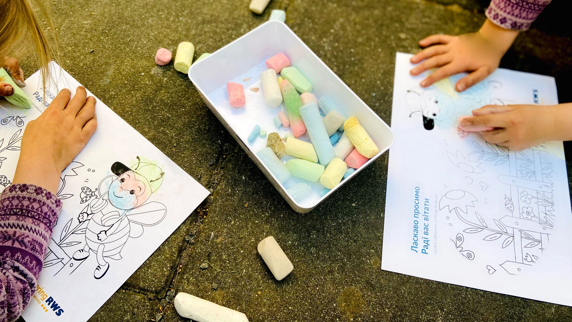 Bunte Farben und RWS-Malvorlagen sorgten für Kinderlächeln