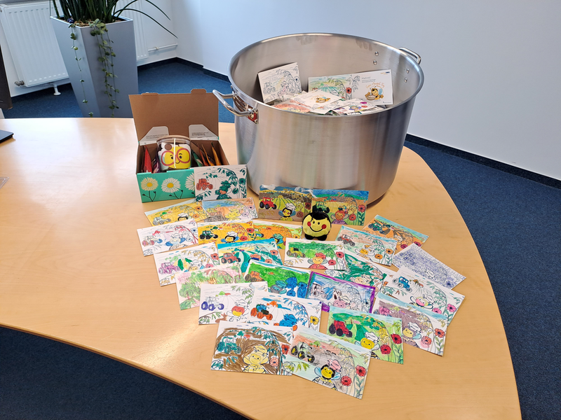 … Buntstiften, Malhefte sowie einer flauschigen RWS-Plüschbiene.