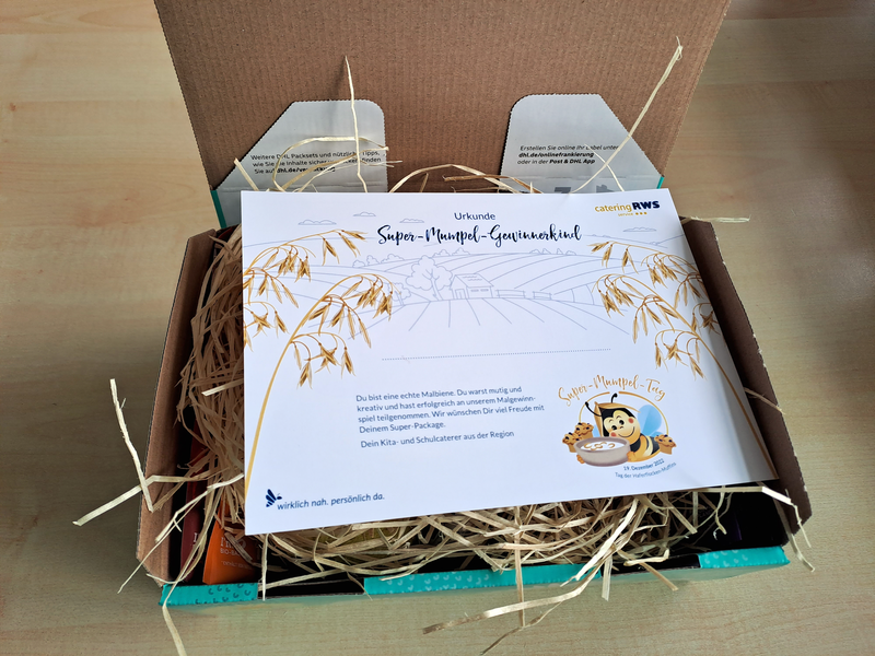 Anlässlich des Haferflocken-Muffin-Tages am 19. Dezember 2022 informierte der Gemeinschaftsversorger RWS in den von ihnen betreuten Kindertages- und Schuleinrichtungen über das Supergetreide Hafer. Bekannt vor allem in Form von gesunden und nahrhaften Haferflocken zeigt es sich als äußerst wandlungsfähig: Mal süß als Porridge oder herzhaft in Form von Brot. In jedem Fall startet damit jeder als Superheld mit Superkraft in den Super-Mumpel-Tag. Doch damit nicht genug: RWS rief Kinder und Schüler zur Teilnahme am Super-Mumpel-Gewinnspiel auf.