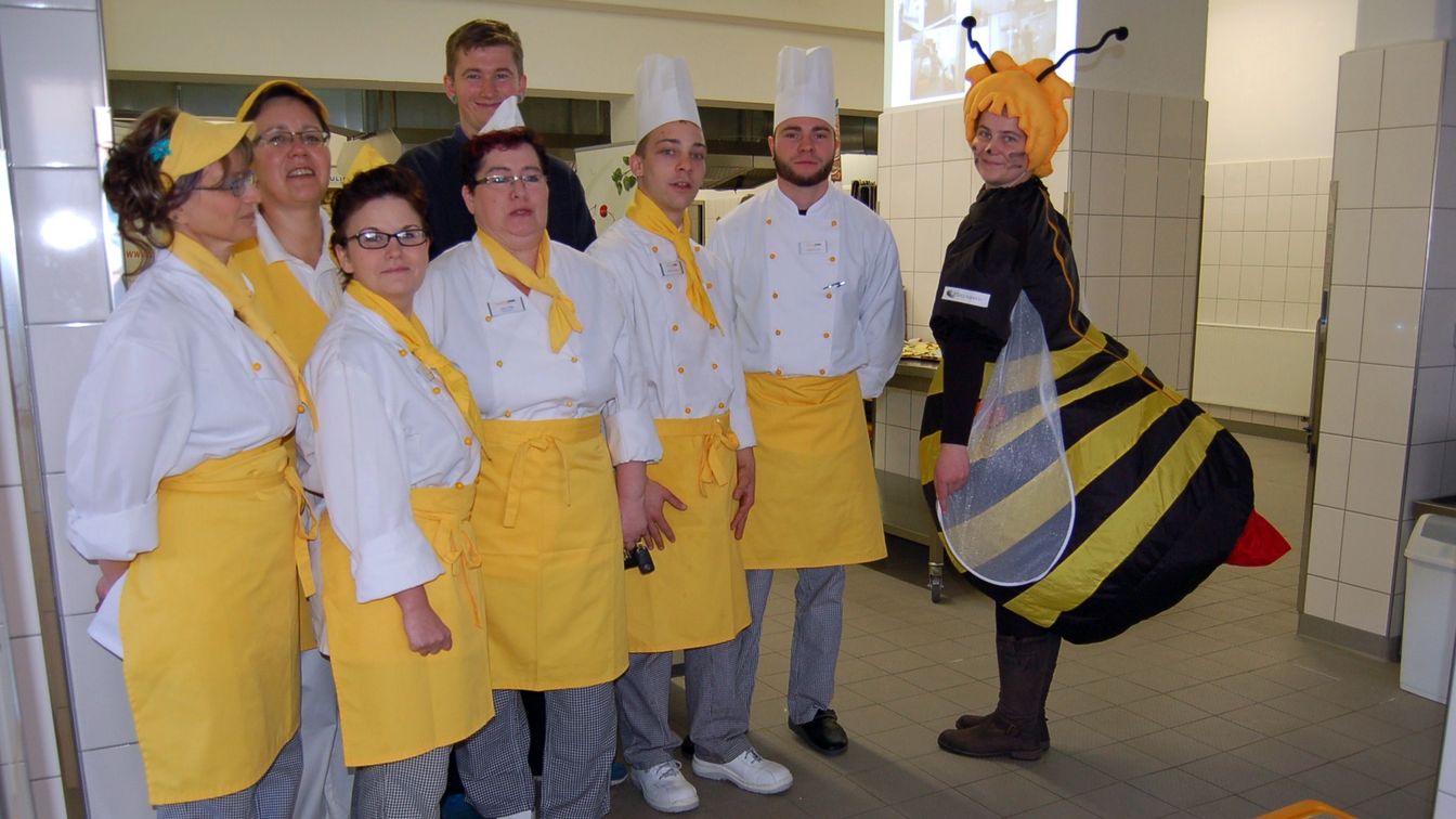 RWS-Küchenleiterin Jutta Urbig (4. v.l.) zum Tag der offenen Küche in Torgau im Jahr 2014