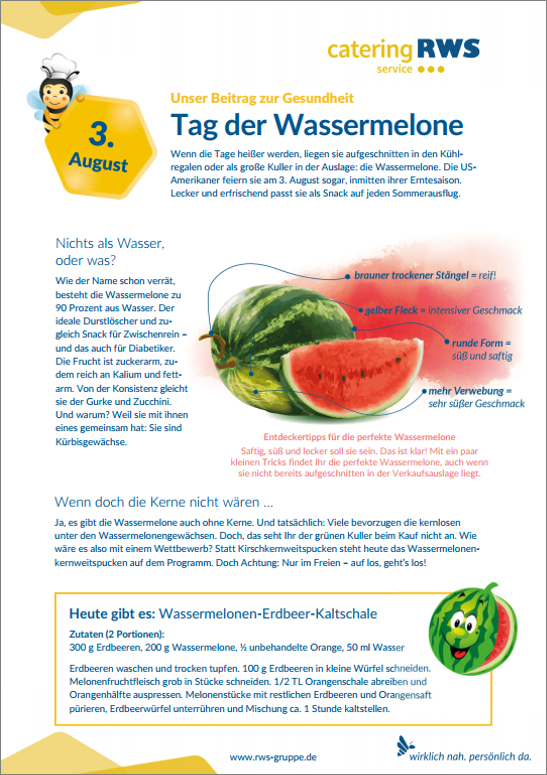 Aushang zum Tag der Wassermelone in Kitas, Schulen und Pflegeheimen