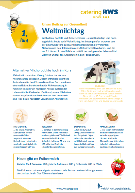 Plakat zum Weltmilchtag in Kitas, Schulen und Pflegeheimen