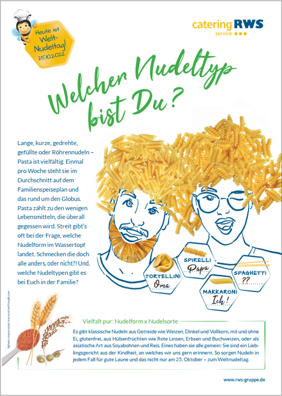 „Welcher Nudeltyp bist Du?“ fragt RWS Cateringservice Kinder und Familien zum Weltnudeltag